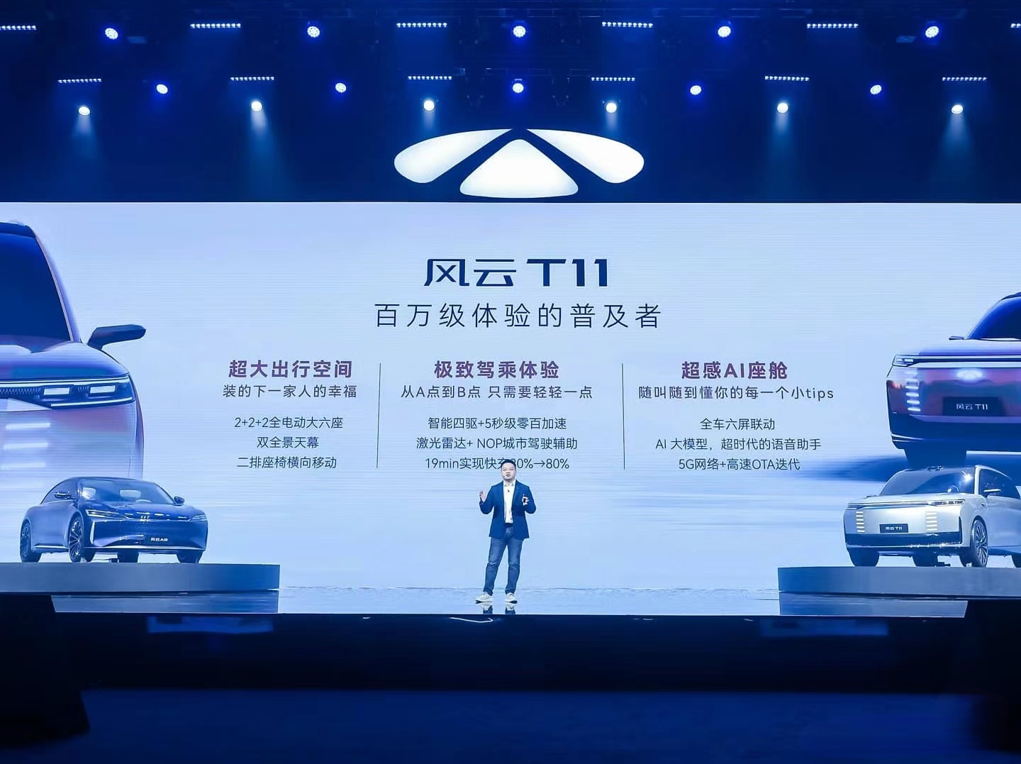 風云A9與風云T11全球首秀:兩款概念車型以驚艷的姿態亮相,車身線條流暢,設計感十足,成為全場焦點。風云A9的“上善若水,隨風賦形”設計理念與風云T11的“天圓地方,動靜皆宜”完美結合,展現了奇瑞在新能源領域的設計實力。