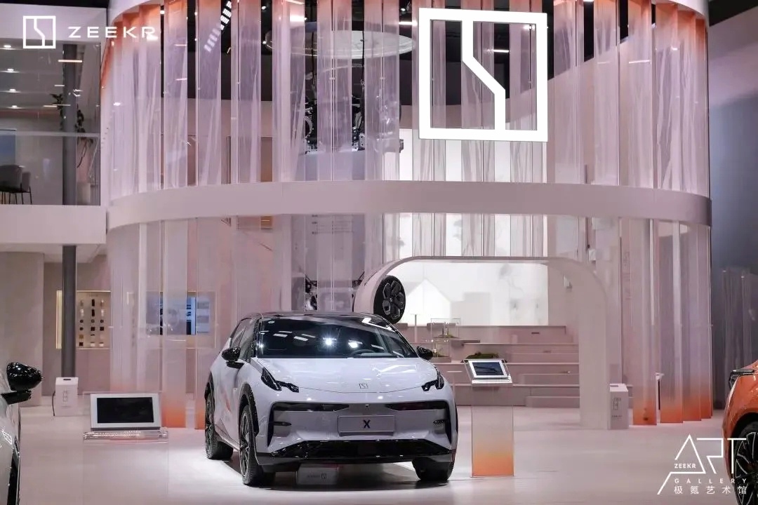 跨界合作藝術館式展臺:極氪展臺與松美術館共同設計,延續了“藝術館”的風格,將科技與藝術完美融合,共同打造出一個充滿藝術氣息的科技空間。這種跨界合作不僅提升了展臺的藝術價值,還拓寬了品牌的文化內涵,為觀眾帶來獨特的視覺享受和沉浸式體驗。這種設計不僅展現了極氪品牌的先鋒創新之美,還通過藝術手段增強了品牌與用戶的互動和共鳴。