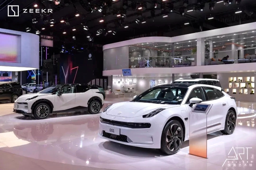 科技與藝術的完美融合:極氪展臺將科技與藝術元素巧妙結合,創造出一個既充滿科技感又不失藝術氛圍的展示空間。這種設計不僅展示了極氪品牌的前沿科技實力,還通過藝術手段增強了品牌與用戶的互動和共鳴。