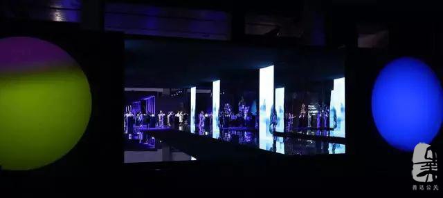 秀場外超大色塊和不規則鏡面的巨型LOGO裝置墻,強烈的視覺呈現,呼應著此次FASHION SHOW 的主題“鏡像·迭生New Space•New life”。秀場內萬象迭生的鏡面LED通道,跨界新媒體藝術裝置,高定系列靜態展、超長單邊T臺與錯落LED屏幕的結合,無處不在的變幻,(文章由善達策劃公司整理編輯),顛覆了所有嘉賓的視覺和感官體驗。