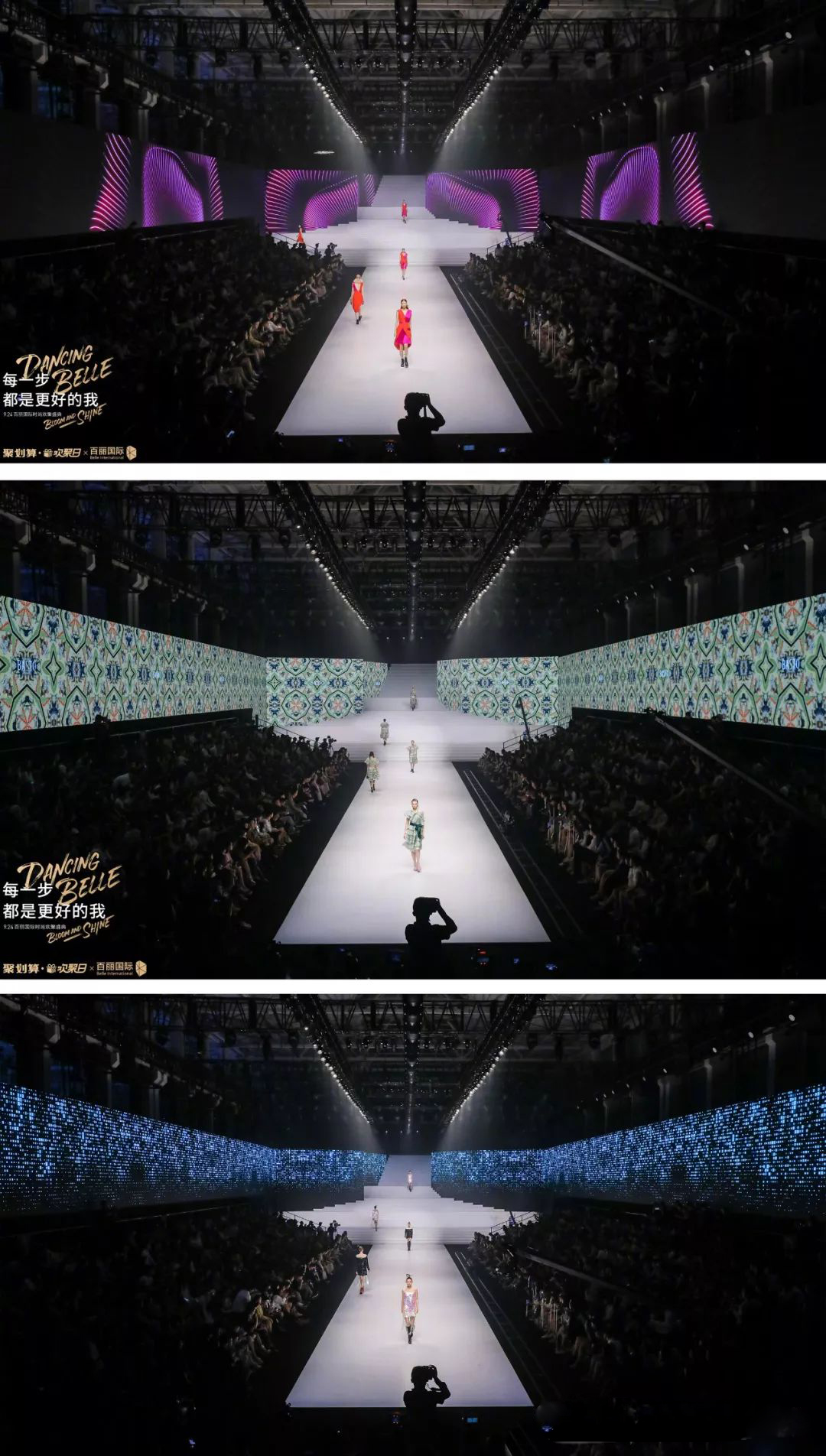 現場LED環幕帶來的沉浸式看秀體驗,讓人仿佛穿梭于秀場中央,美輪美奐。