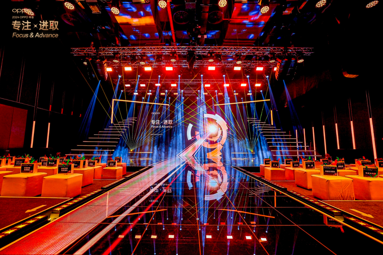 色彩與光影是視覺設(shè)計中的重要組成部分,本次OPPO新春喜樂會在這方面同樣表現(xiàn)出色。設(shè)計師運用了大量的溫暖色調(diào),如紅色、金色等,這些色彩不僅符合新春佳節(jié)的喜慶氛圍,也寓意著吉祥、幸福和美好的未來。同時,光影效果的運用更是將舞臺效果推向了極致。通過精準(zhǔn)的燈光控制和光影變化,設(shè)計師打造出了一個層次分明、立體感十足的舞臺空間。光影的交錯與變幻,不僅增強(qiáng)了舞臺的視覺效果,也讓觀眾仿佛置身于一個夢幻般的世界中。
