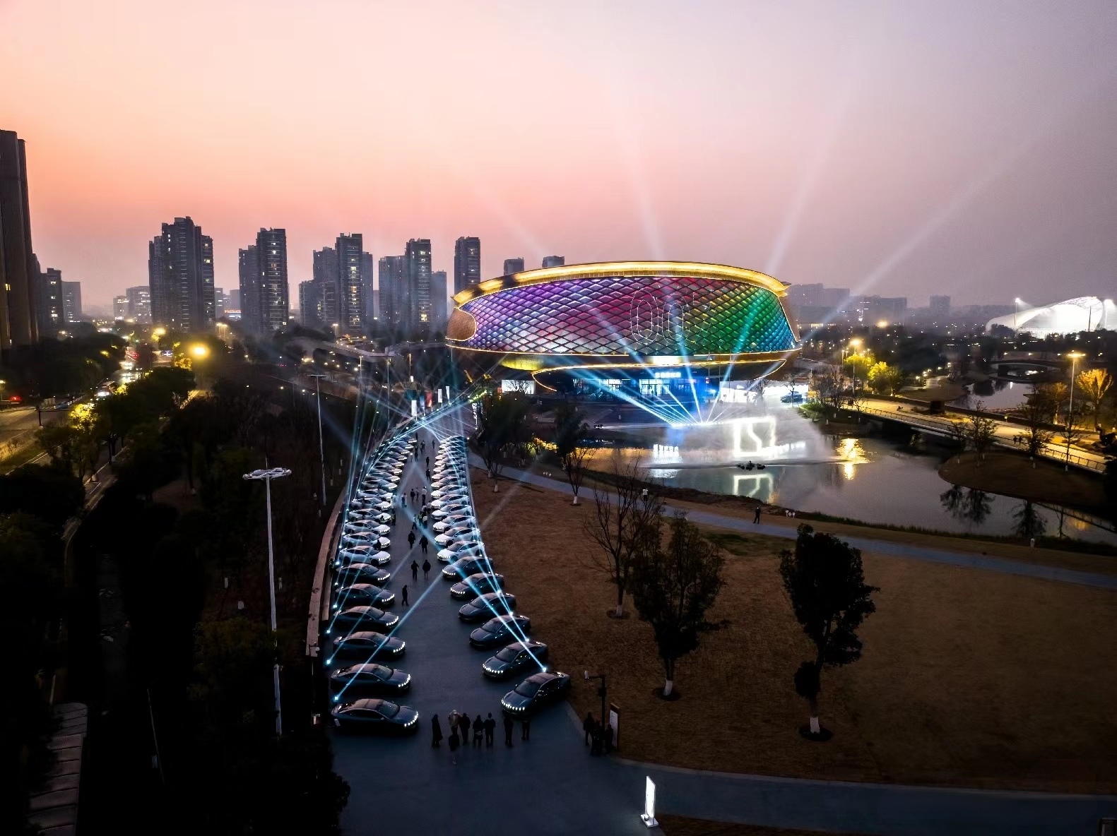 發布會場地選在了具有現代感與科技氛圍的拱墅運河體育公園體育館。場地布置巧妙地將科技與豪華元素融為一體。入口處,巨大的LED屏幕播放著極氪007的宣傳視頻,吸引著每一位入場者的目光。場館內部,燈光與裝飾相得益彰,營造出一種既高端又溫馨的氛圍。觀眾席的布置也充分考慮了舒適性與互動性,為觀眾提供了極佳的觀演體驗。
